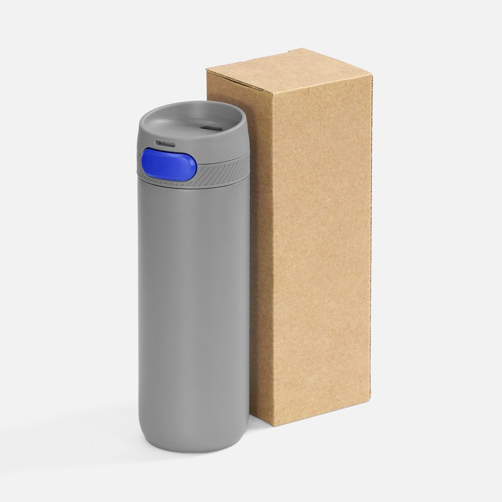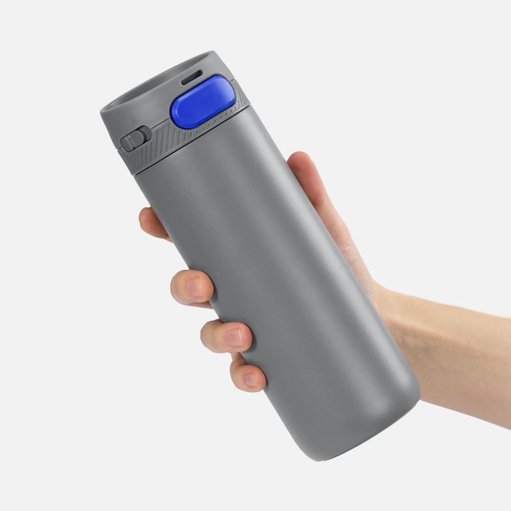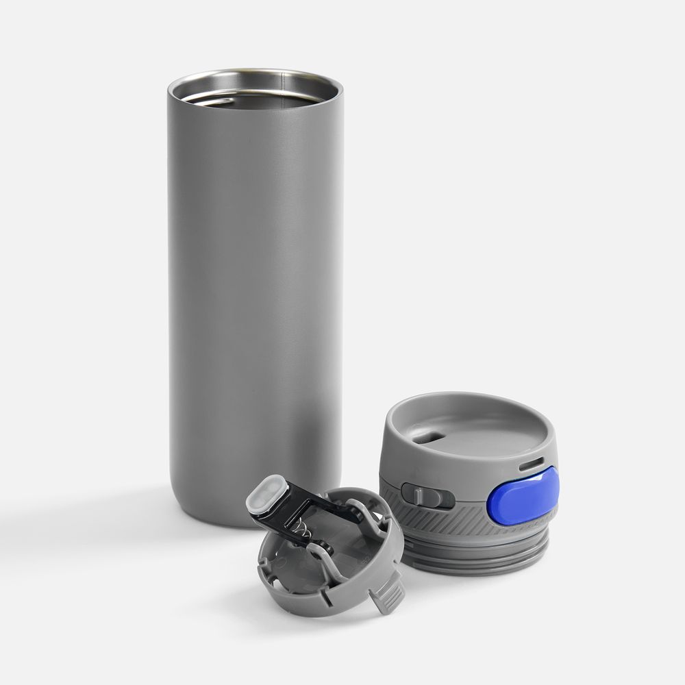 Термостакан X1 с цветной кнопкой, серый с синим