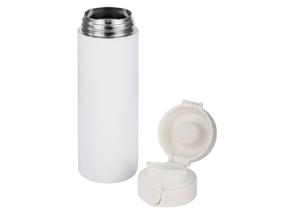 Вакуумная термокружка Waterline c кнопкой Guard, 400 мл, тубус, белый купить оптом и в розницу с нанесением логотипа в Уфе