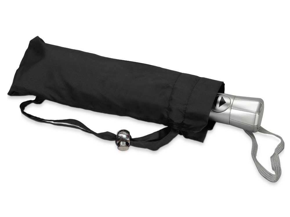 Автоматический складной зонт дополнит любой образ и защитит во время дождя. Зонт легко складывается до компактных размеров. На ткань купола можно нанести контрастную надпись или изображение.