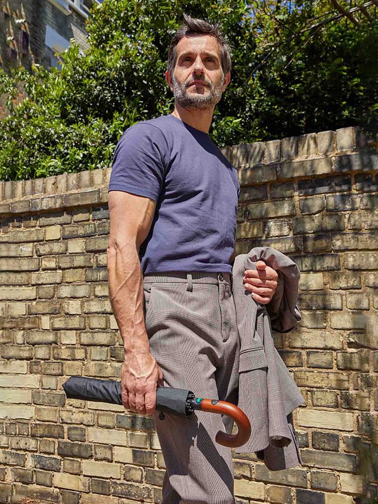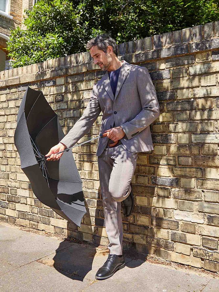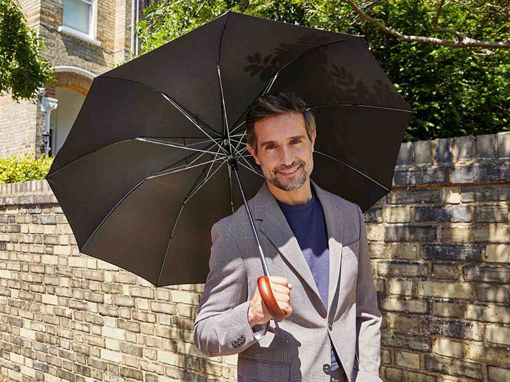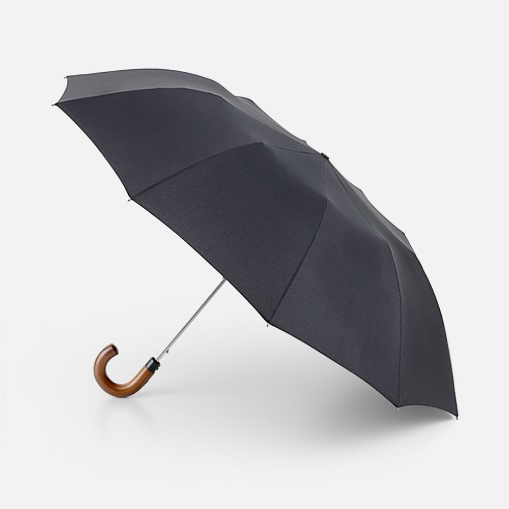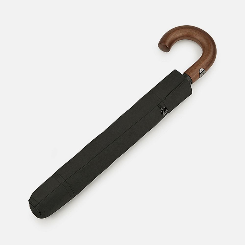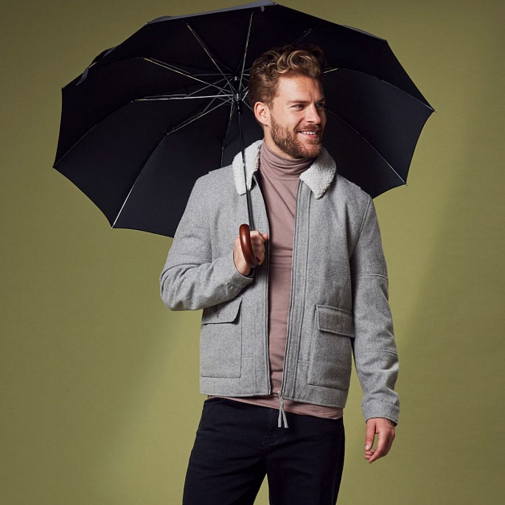 Идеальная модель для тех, кто не задается целью найти легкий и короткий складной зонт-«механику», а скорее обрадуется старому доброму увесистому и основательному полуавтомату. У модели ветроустойчивая конструкция. Рукоять выполнена из массива дерева и благодаря натуральности материала невероятно комфортно ощущается ладонью.